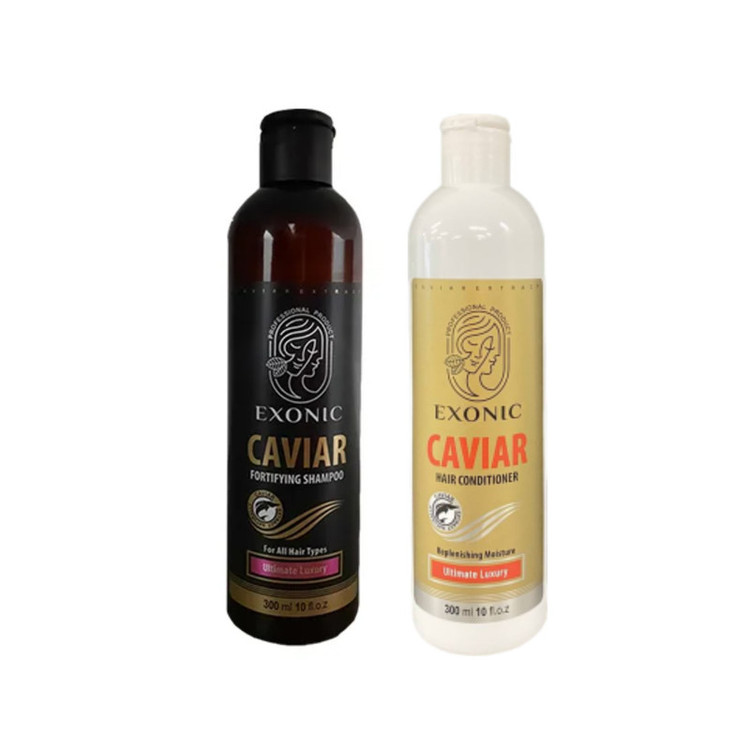 عصاره خاویار که مروارید سیاه نیز نامیده می شود منبع سرشاری از انواع مواد معدنی، اسیدهای آمینه و آنتی اکسیدان بوده و همچنین حاوی ویتامین های A,E,D,C و ویتامین های گروه B و نیز اسیدهای چرب امگا 3 می باشد که استفاده از آن در محصولات بهداشتی و آرایشی باعث ترمیم، نرمی، درخشندگی و جوانسازی پوست و مو می گردد. شامپو حاوی عصاره خاویار Exonic حاوی مواد ضدالکتریسیته ساکن بوده و شانه پذیری موها را افزایش داده و به آن ها حالتی ابریشمی می دهد. استفاده از این شامپو باعث ایجاد یک لایه حفاظتی روی موها می شود که آن ها را در مقابل اشعه مخرب UV نیز محافظت نموده و موجب حفظ رنگ طبیعی مو نیز خواهد گردید.