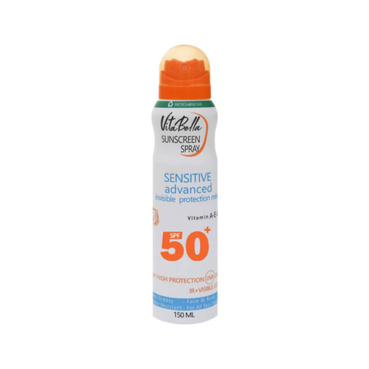 اسپری ضد آفتاب بدون رنگ ویتابلا SPF 50 مدل sun ‌مناسب انواع پوست حجم 150 میلی‌لیتر